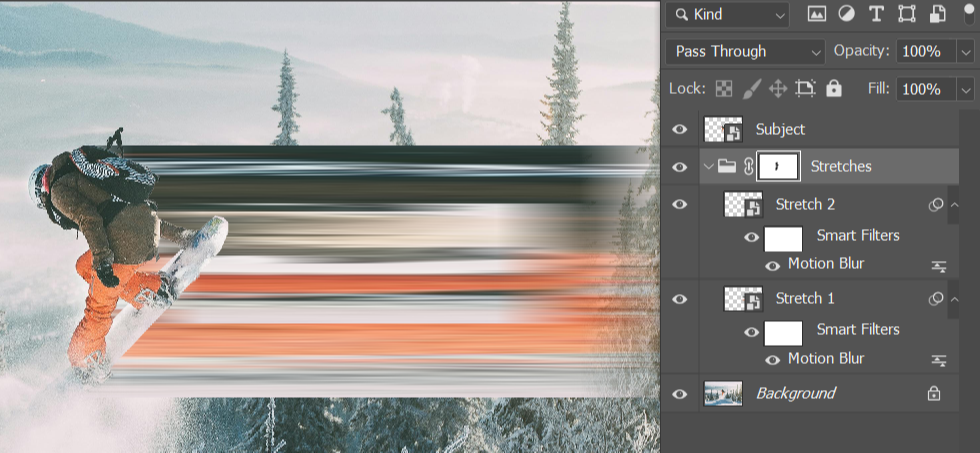 - With the stretch layer selected, go to Filter > Blur > Motion Blur.