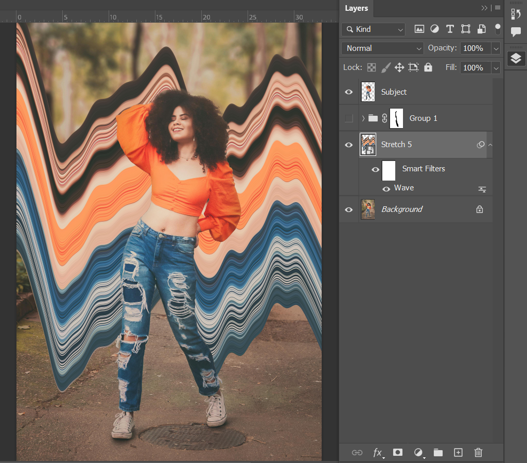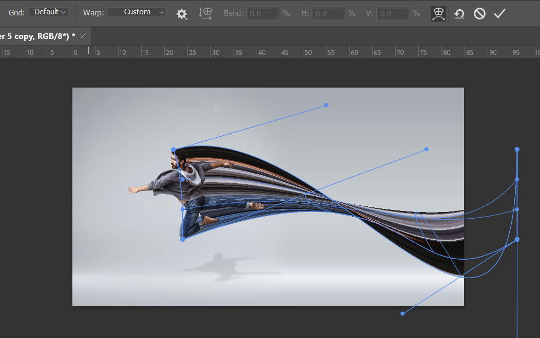 - You will likely need to go in with some layer masks to hide areas that appear due to the warp manipulations.